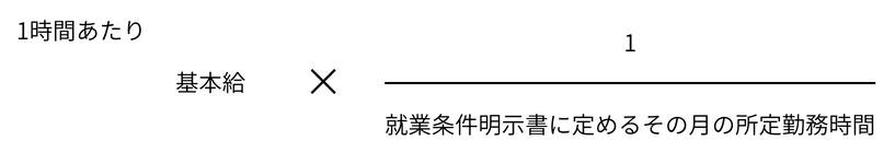 - 遅刻、早退、私用外出の時 基本給から次の時間計算により控除する。