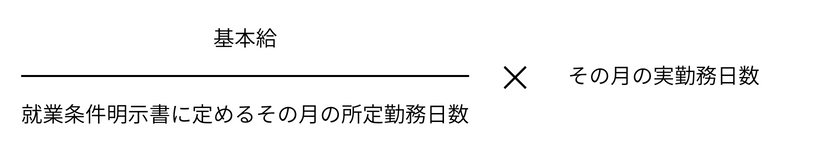 - 欠勤の時 基本給から欠勤日数に応じて次の日割計算により控除する。