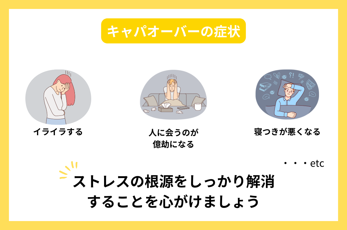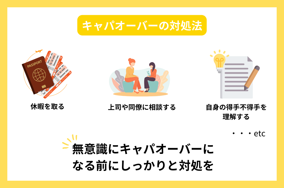 キャパオーバーは様々な要因によって、心身が疲弊するために起こるといえます。そのため、キャパオーバー時には、しっかりと休暇をとって心身をリフレッシュすることが大切です。