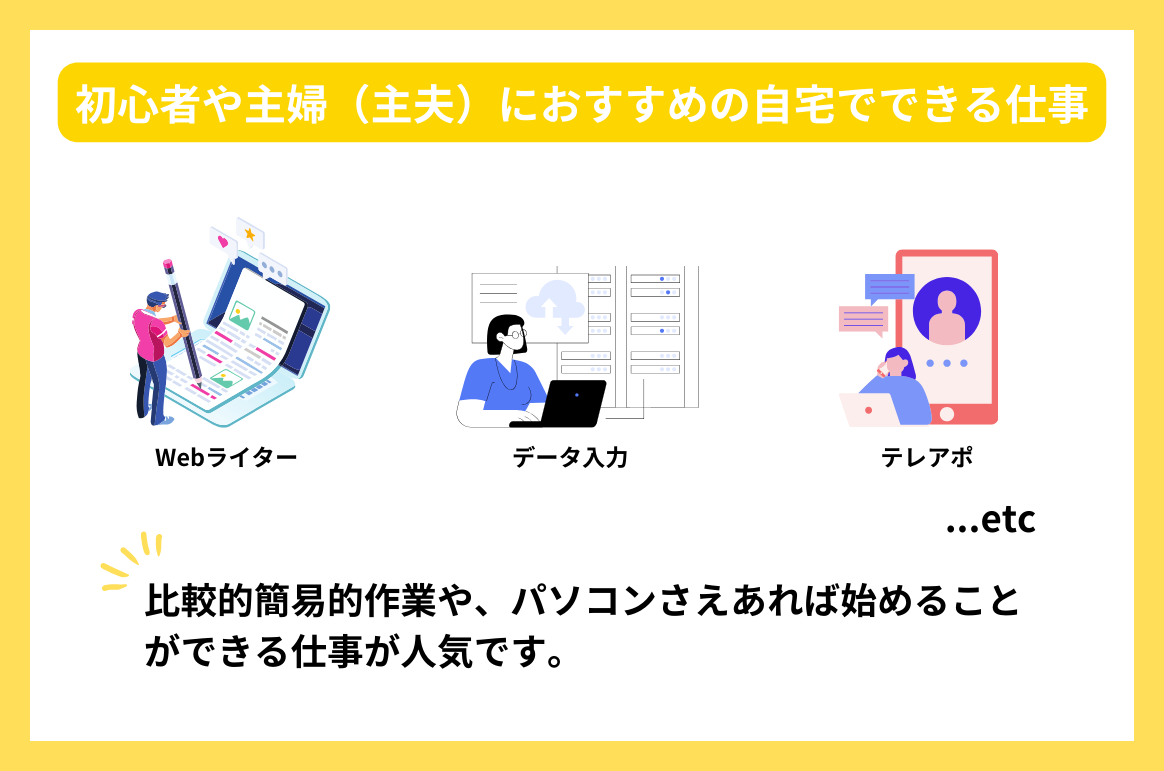 - 初心者や主婦(主夫)におすすめの自宅でできる仕事